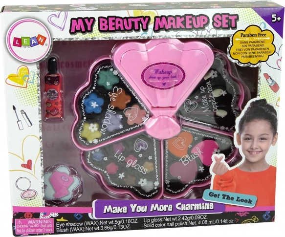 Šis kriauklės formos kosmetikos rinkinys yra idealus mažosioms pradedančiosioms vizažistėms. Jame yra šeši akių šešėliai, trys skaistalai, aštuoni lūpų blizgiai, nagų lakas ir teptukai naudojimui. Kiekvienas sluoksnis slepia unikalių kosmetikos galimybių, leidžiančių mergaitėms susikurti savo stilių. Dėl dydžio rinkinį lengva visada turėti po ranka.