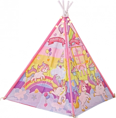 Palapinė lengvai surenkama ir suteikia vaikams erdvės pramogoms arba poilsiui po įtemptos dienos. Stogą puošia linksmų vienaragių ir spalvingų pilių motyvai, kurie skatina vaizduotę.