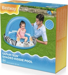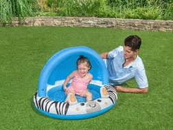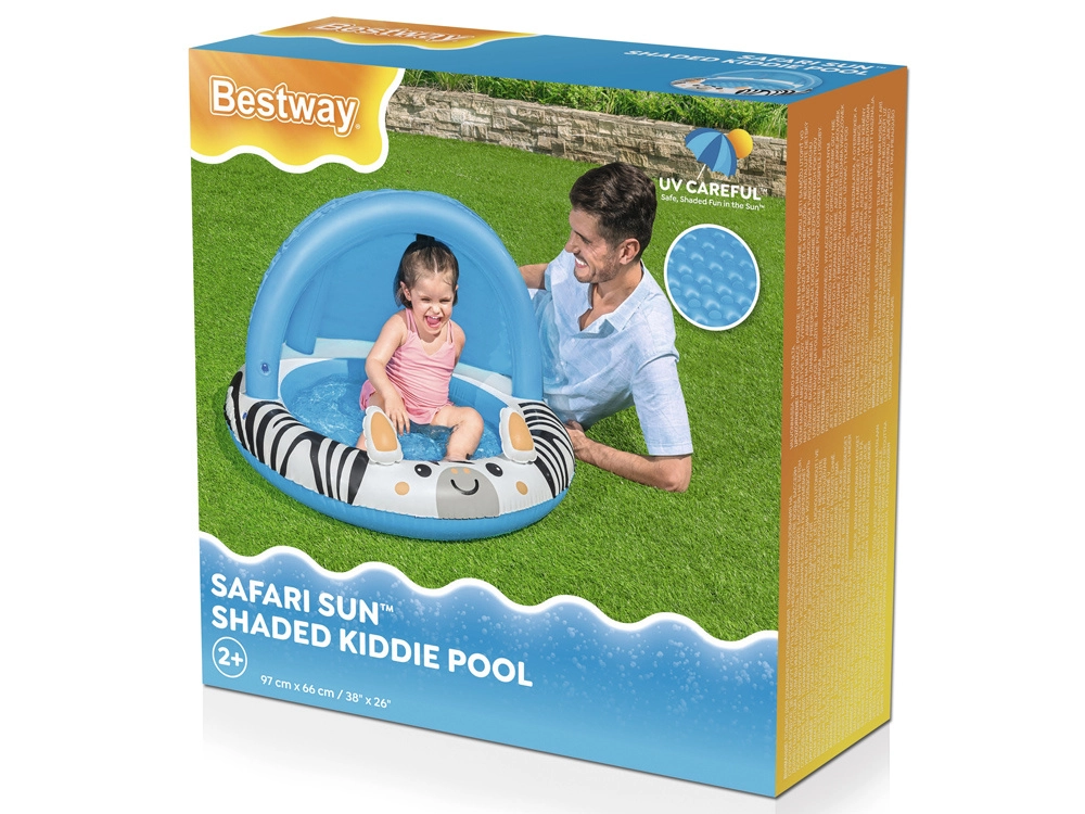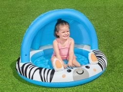 Žavus pripučiamas brastinis baseinėlis su zebros motyvu ir saulės stogeliu suteiks vaikams patogų ir saugų atsigaivinimą sode, terasoje ar net balkone. Lengvas ir paprastai pripučiamas, su minkštu pripučiamu dugnu didesniam komfortui ir UV užtamsinimu ramesniam žaidimui saulėje.
