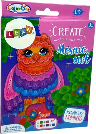 Imkitės kūrybos su šiuo kūrybiniu rinkiniu ir užpildykite iš anksto atspausdintą pelėdos paveikslėlį spalvotais kvadratėliais. Jums tereikia patogios vietos, ir pramoga gali prasidėti. Baigta mozaika puikiai papuoš vaikų kambarį ir suteiks džiaugsmo iš savo kūrybos.