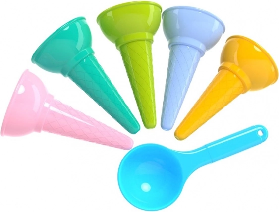 Paverskite smėlį mažute ledainėle! Šis spalvingų ledų ragelių formelių rinkinys su samteliu suteiks valandų valandas kūrybiško žaidimo paplūdimyje ir smėlio dėžėje. Rinkinyje yra 5 rageliai + samtelis iš patvaraus, bekvapio plastiko pastelinėmis spalvomis. Tinka vaikams nuo 1 metų, atitinka CE sertifikatą.