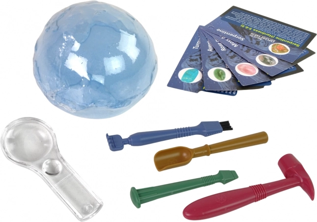 Atraskite geologijos ir archeologijos pasaulį su šiuo linksmu vaikų rinkiniu. Rinkinio pagalba vaikai gali iškasti tikrus mineralus iš „gipso žemės“ naudodamiesi saugiais įrankiais, apžiūrėti juos didinamuoju stiklu ir išmokti jų pavadinimus su mokomosiomis kortelėmis. Lavina smulkiąją motoriką, kantrybę ir smalsumą – ideali dovana mažiesiems tyrinėtojams.