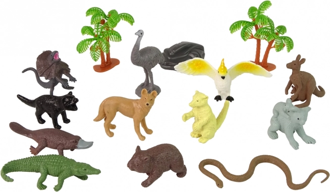 Rinkinyje yra kengūra, koala, krokodilas, emu, papūga, gyvatė, ančiasnapis, vombatas, Tasmanso velnias, driežas, dykuminė lapė, 2 medeliai ir uola – viskas, ko reikia susikurti savo Australijos pasaulį.