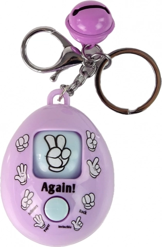 Smagus ir spalvingas kiaušinio formos raktų pakabukas su integruotu žaidimu akmuo, žirklės, popierius. Tereikia paspausti centrinį mygtuką ir pasirodys atsitiktinis simbolis. Puikiai tinka kaip stilingas aksesuaras raktams, kuprinei ar rankinei, su patogiu žiedeliu ir karabinu lengvam pritvirtinimui ir mažu varpeliu, padedančiu greitai rasti raktus.