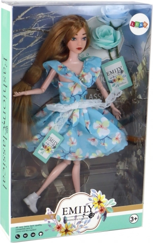 Lėlė Emily (30 × 7 × 4 cm) – ideali palydovė kasdieniams žaidimams. Ilgus tamsiai blyškių (tamsios blondinės) atspalvio plaukus lengva šukuoti ir puošti, todėl vaikai gali kurti nesuskaičiuojamą daugybę šukuosenų. Mėlyną suknelę su gėlėtu raštu puošia nėriniuota kaspinėlis ir nedidelė „deimantinė“ detalė prie iškirptės, suteikianti lėlei elegantišką išvaizdą.