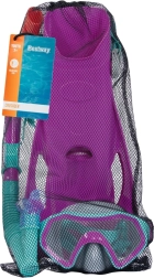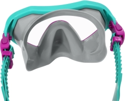 Kaukė suteikia platų matymo lauką dėl polikarbonatinių lęšių su UV apsauga, minkštas silikoninis sandarinimas puikiai priglunda, o reguliuojamas dirželis užtikrina stabilumą. Vamzdelis su ergonomišku silikoniniu kandikliu turi iškvėpimo vožtuvą ir bangolaužį nuo vandens patekimo. Pelekai su reguliuojamu dirželiu 37–41 dydžio padeda užtikrinti efektyvų mostą ir lengvą judėjimą vandenyje.