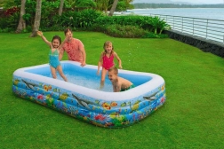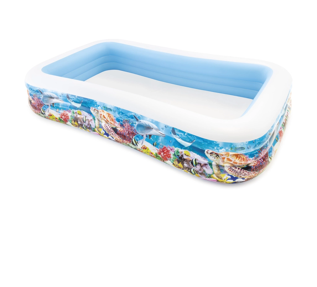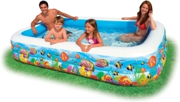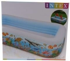 INTEX Tropical pripučiamas baseinas su jūros pasaulio motyvu pavers jūsų sodą gaivinančia oaze. Dėl didelių išmatavimų 305 × 183 × 56 cm jame patogiai pramogaus vaikai nuo 6 metų ir suaugusieji. Patvari vinilinė medžiaga užtikrina ilgą naudojimą ir ramybę.