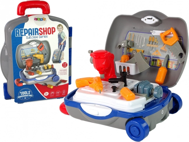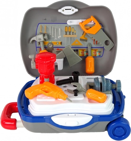 Važinėjamas įrankių lagaminėlis kiekvieną vaiką pavers mažu meistru. Rinkinyje yra saugūs plastikiniai įrankiai ir darbo paviršius žaidimams namuose ir kelionėje. 17 dalių rinkinys, lagaminėlis su ratukais ir ištraukiama rankena bei lengvas daiktų sudėjimas skatina kūrybiškumą ir smulkiąją motoriką. Tinka nuo 3 metų, atitinka EN71 ir CE.