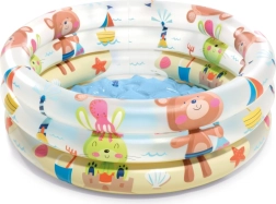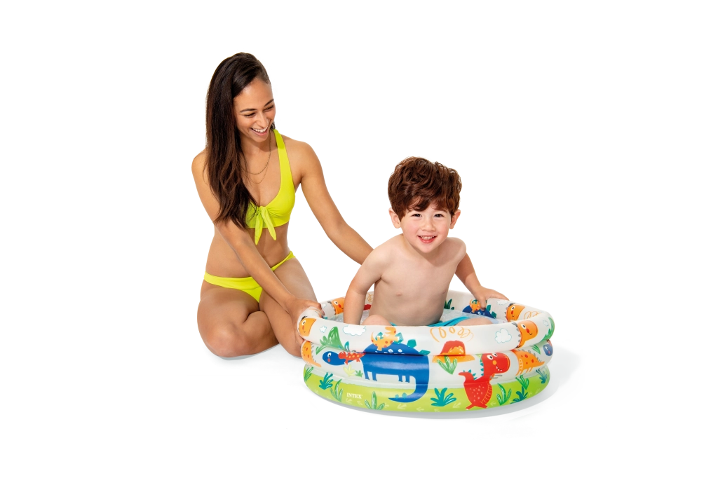 Intex pripučiamas baseinas su mielais dinozaurais idealiai tinka pirmiesiems vandens žaidimams vaikams nuo 1 iki 3 metų. Dėl 61 cm skersmens ir 22 cm aukščio jis telpa beveik visur ir suteikia saugią, seklą zoną žaidimams ir atgaivai karštomis dienomis.