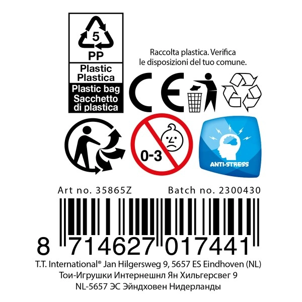 Atraskite paprastą būdą kontroliuoti stresą. Ši 8 cm skersmens spaudoma apyrankė pagaminta iš elastingos, malonios medžiagos, kurią galima kartotinai spausti ir minkyti. Puikiai tinka minčiai nuraminti, rankų įtampai atpalaiduoti ir švelniam smulkiosios motorikos lavinimui.