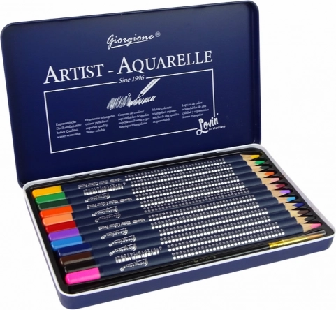 Su šiuo 12 akvarelinių pieštukų rinkiniu ir metaliniu dėklu atsiveria naujos galimybės jūsų meniniams darbams. Naudojimas paprastas: pieškite kaip įprastu pieštuku, o tuomet, pasitelkę pridėtą teptuką, sudrėkintą vandeniu, sukurkite akvarelinį efektą. Stilingas ir kompaktiškas pakuotės dizainas daro šį rinkinį idealiu sprendimu patogiam nešiojimui ir laikymui.