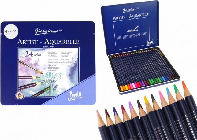 24 akvarelinių pieštukų rinkinys elegantiškoje metalinėje dėžutėje – puiki galimybė visiems meno entuziastams. Kiekvieno pieštuko ilgis yra 17 cm, jie sukurti, kad suteiktų intensyvias spalvas.