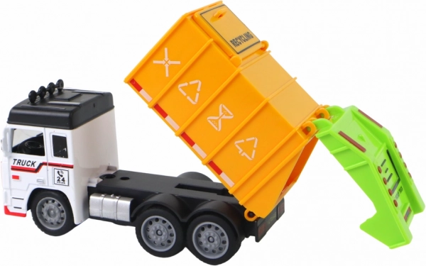 Realistiška šiukšliavežė su priekaba pradžiugins mažuosius vairuotojus. Ji turi trintinę pavarą, atidaromą priekabą ir viršutinę angą „atliekoms“ mesti, pagaminta iš patvaraus plastiko ir siūloma 2 spalvų. Kompaktiški matmenys 13 × 7 × 5 cm, saugi dėl CE ir EN71 sertifikavimo, skirta vaikams nuo 3 metų.