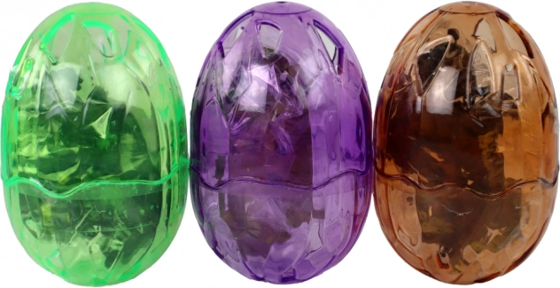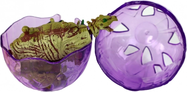 Permatomas plastikinis kiaušinis, kurio matmenys 9 × 6 × 6 cm, slepia realistinę dinozauro figūrėlę, kurią vaikas matys dar neatsidaręs. Kiaušinis lengvai atsidaro ir taip pat tarnauja kaip patogi dėžutė žaislui laikyti – puikiai tinka kelionėms ir vaikų kambariams.