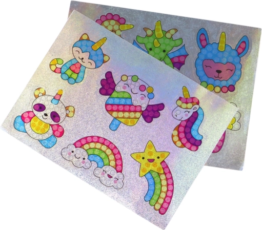 Atraskite linksmą kūrybinį deimantinių lipdukų rinkinį, kuriame vaikai kuria žaižaruojančius paveikslėlius iš mažų akmenėlių. Paprasta naudoti, įvairūs spalvoti raštai ir smulkiosios motorikos bei kūrybiškumo ugdymas daro šį rinkinį puikiu pasirinkimu vaikams nuo 6 metų. Į komplektą įeina aplikatorius–rašiklis, padėkliukas, 7 spalvų akmenėliai ir 2 lipdukų lapai.