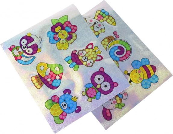 Atraskite kūrybos džiaugsmą su vaikų deimantinio piešimo lipdukų rinkiniu. Klijuojant smulkius žvilgančius akmenėlius ant atspausdintų šablonų sukuriami originalūs ir patvarūs gyvūnėlių lipdukai, kuriais papuošite sąsiuvinius, kuprines ir penalus. Veikla paprasta ir smagi, puikiai lavina smulkiąją motoriką, kantrybę ir akių–rankų koordinaciją.