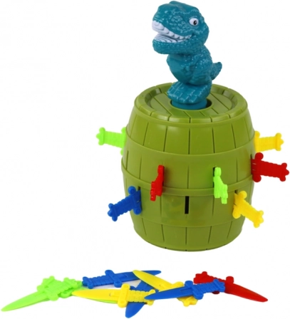 Žaidimas „Pašok, dinozaure!“ siūlo paprastą, bet įtraukiantį smagumą visai šeimai. Įdėkite mažą dinozaurą į statinę ir iš eilės kiškite kardus į angas. Tas, kurio ėjimas priverčia dinozaurą iššokti, pralaimi – o kiti gali juoktis ir žaisti vėl.