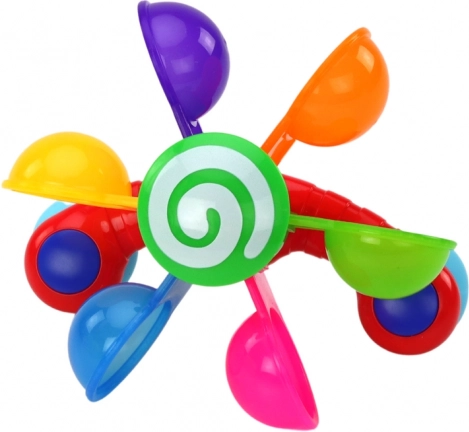 Mūsų sukamasis vonios žaislas siūlo 6 spalvotas lėkšteles, kurios ima suktis vos tik užpylus vandens. Lėkštelės sukurtos taip, kad skatintų jūsų vaiko kūrybiškumą ir vaizduotę. Naudojant siurbtukus, žaislą lengva ir saugu pritvirtinti prie vonios krašto.