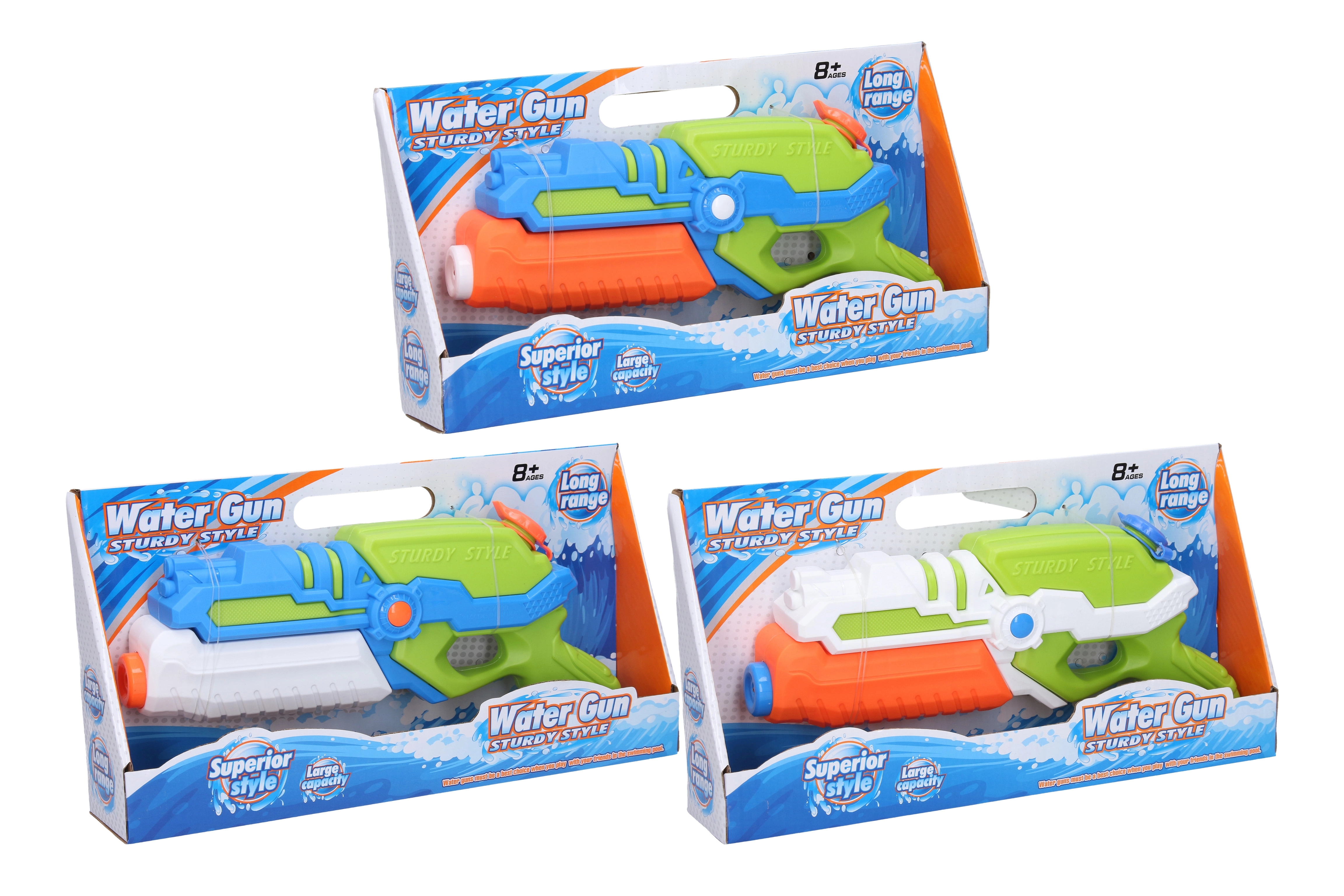 Rinkitės mėlyną arba baltą variantą ir mėgaukitės nerūpestingu laiku lauke. Patvari konstrukcija užtikrina, kad šautuvas lengvai atlaikys vasaros nuotykius prie vandens ir sode.