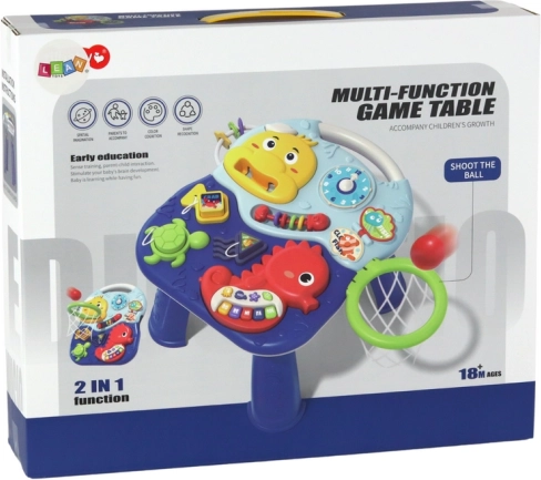 Spalvingas interaktyvus staliukas su jūrų gyvūnų motyvais vienoje vietoje jungia mokymąsi ir judėjimą. Vaikus sudomins pianinas, laikrodis, iliustruota knygelė ir aštuonkojis su karoliukais, o kamuoliukų krepšys suteiks sportinio azarto. Žaidimas natūraliai lavina smulkiąją motoriką, jutiminius pojūčius ir rankų–akių koordinaciją.