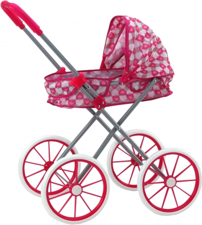 Mielas rožinis lėlių vežimėlis su širdelių raštu pradžiugins kiekvieną mažąją mamytę. Jis siūlo stilingą dizainą, didelius putų ratus sklandžiam važiavimui, sulankstomą stogelį ir lengvą sulankstymą patogiam laikymui. Puikiai lavina vaizduotę, empatiją ir socialinius įgūdžius.