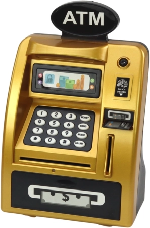 Vaikiškas bankomatas sukurtas derinti mokymąsi su žaidimu. Pagamintas iš patvaraus plastiko, stilingos auksinės ir juodos spalvų, puikiai tinka bet kuriame vaikų kambaryje.
