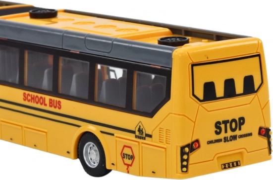 Tikroviškas mokyklinio autobuso modelis su kabinos apšvietimu suteikia autentišką važiavimo įspūdį ir skatina kūrybišką žaidimą.