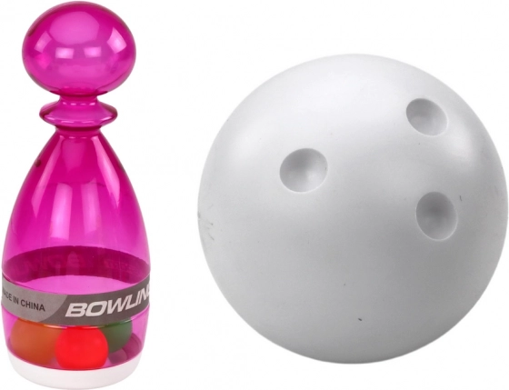 - 6 kėgliai (2 violetiniai, 2 mėlyni, 2 geltoni) + 1 kamuolys