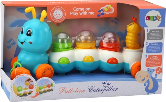 Spalvingas tempiamas vikšras ant ratukų su virvele leidžia vaikui pradėti žaidimą jį tempiant ir klausantis linksmų melodijų. Skatina klausos suvokimą ir lavina motorinius įgūdžius tempiant ir vairuojant vikšrą.