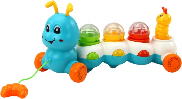 Šis interaktyvus žaislas turi tris plastikinius kamuoliukus vikšro nugarėlėje. Vaikas gali juos išimti ir ridenti grindimis – tai teikia džiaugsmą ir lavina akių-rankų koordinaciją bei smulkiąją motoriką.