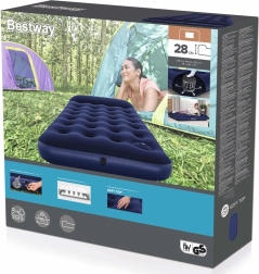 Vienvietis pripučiamas čiužinys BESTWAY siūlo patogų miegą namuose ir kelionėse. Dėl tvirtos coil-beam konstrukcijos, integruoto kojinio siurblio ir įmontuotos pagalvės jį lengva pripūsti, o jis suteikia stabilią, komfortišką atramą. Viršutinis aksomiškai minkštas vinilas didina komfortą, o dvikryptis vožtuvas leidžia greitai pripūsti ir išleisti orą.