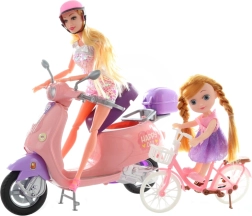 Atraskite didį lėlių rinkinį su priedais, kuris suteiks valandų kūrybiško žaidimo. Viduje rasite 30 cm sąnariuotą lėlę, 16 cm mažesnę lėlę, rožinį 33 cm automobilį, 30 cm motorolerį, 17 cm dviratį, sūpynes, šuniuką ir stilingus priedus, tokius kaip skrybėlė, šalmas ir krepšys. Kokybiškas plastikinis atlikimas, pakuojama dovaninėje dėžėje. Amžius 3+.
