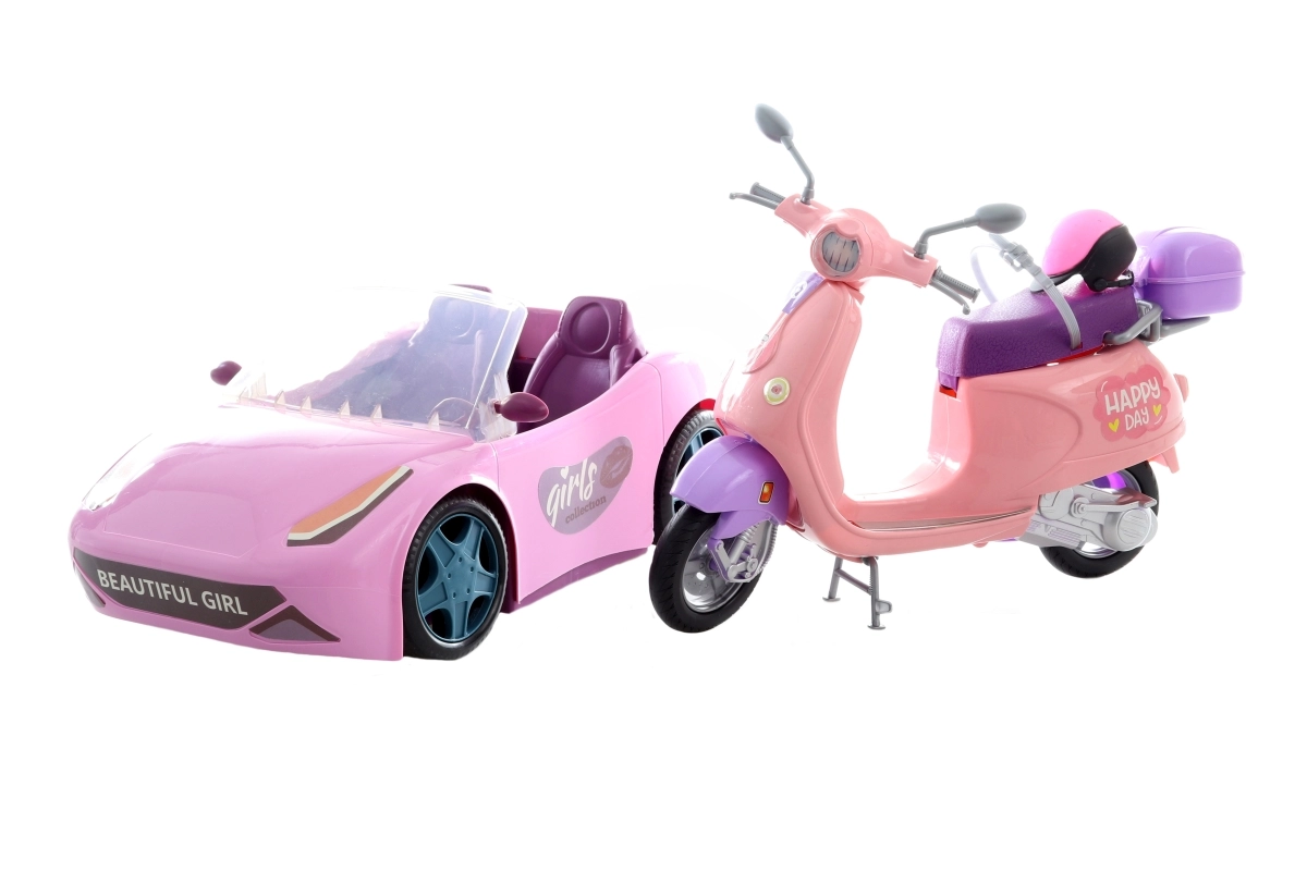 Rožinis automobilis (33 cm), realistiškas motoroleris (30 cm) ir dviratis (17 cm) leis lėlėms leistis į išvykas, į miestą ar parką. Lengvai valdomi ir skatina aktyvų žaidimą.