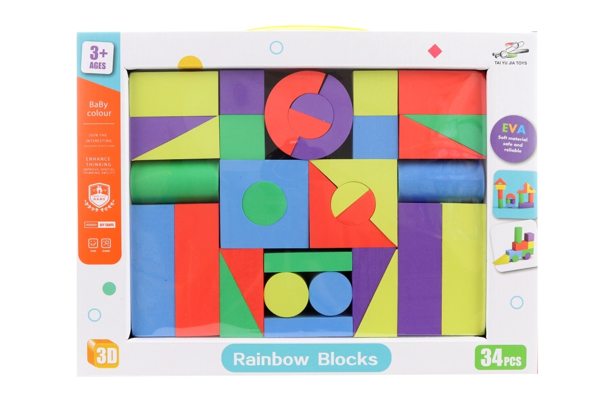 Skatinkite vaikų kūrybiškumą ir mokymąsi per žaidimą su 34 spalvotų putų blokelių rinkiniu. Iš kiek tvirtesnių putų pagaminti blokeliai yra lengvi, patvarūs ir malonūs liesti, todėl juos lengva dėlioti ir jie saugūs mažiesiems statytojams.