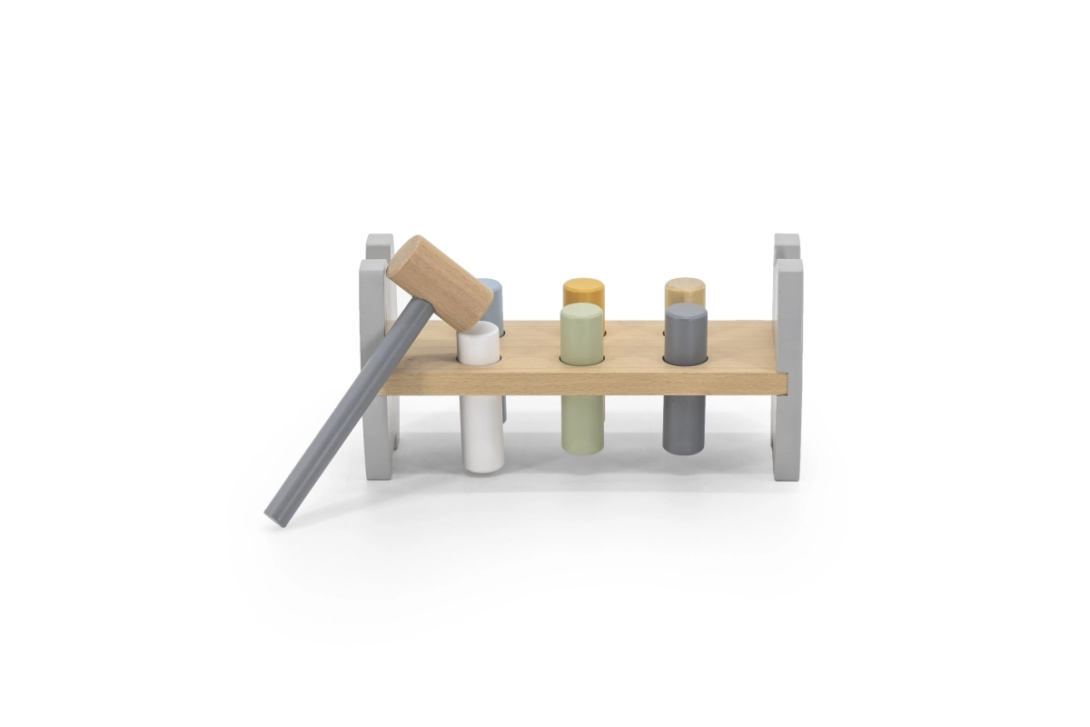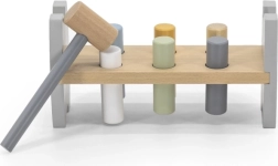 Spalvingas Viga prekės ženklo žaislas su kaiščiais pradžiugins kiekvieną vaiką. Švelnios pastelinės spalvos ir patogus plaktukas skatina žaidimą, kurio metu vaikai tobulina vikrumą, judesių tikslumą ir pamažu įsisavina spalvų atskyrimą.