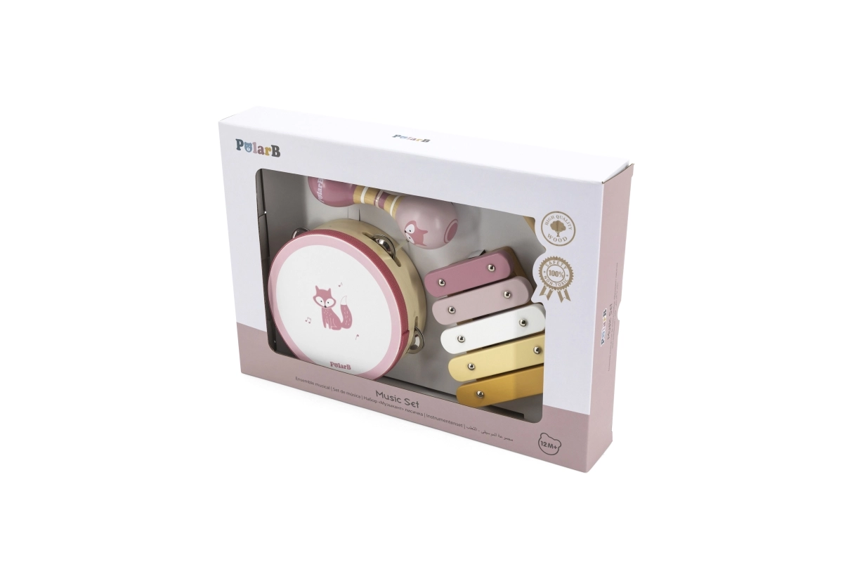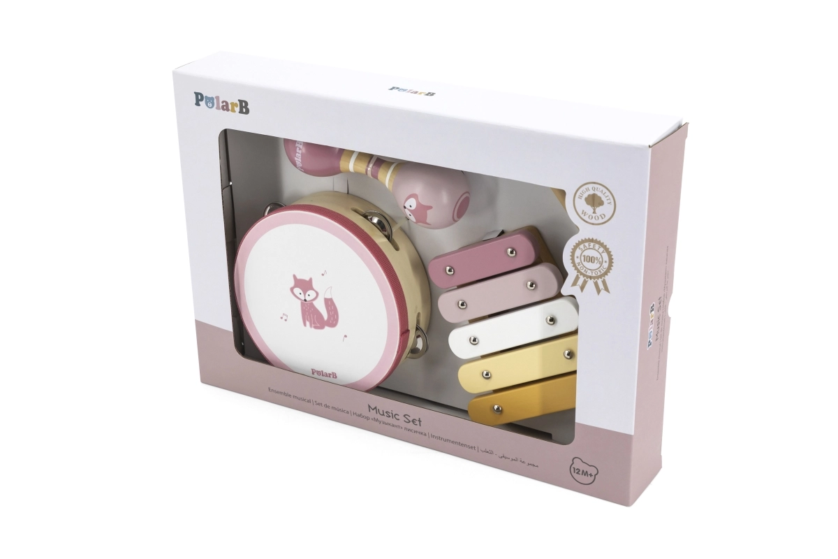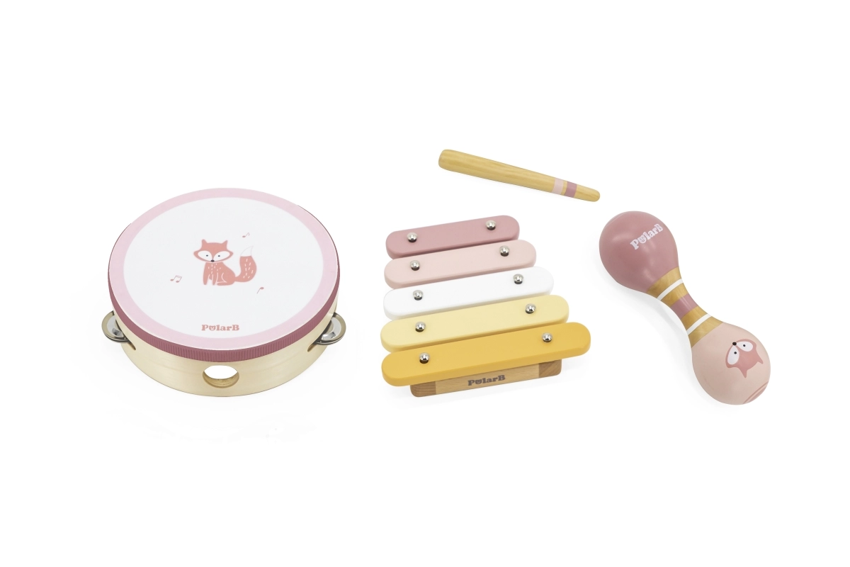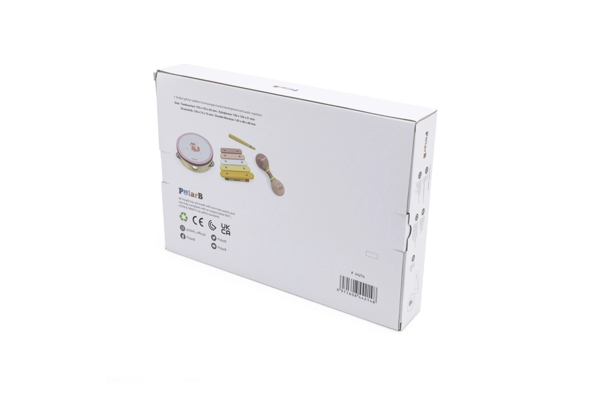 PolarB muzikos rinkinys iš prekės ženklo VIGA sukurtas vaikams nuo 12 mėnesių ir vyresniems. Jame yra trys muzikiniai instrumentai: tambūrinas, ksilofonas ir dvigubas marakasas. Kiekvienas instrumentas pagamintas iš lakuotos medienos ir nudažytas netoksiškais dažais. Šis rinkinys idealiai tinka lavinti kūrybiškumą ir muzikalinius įgūdžius.