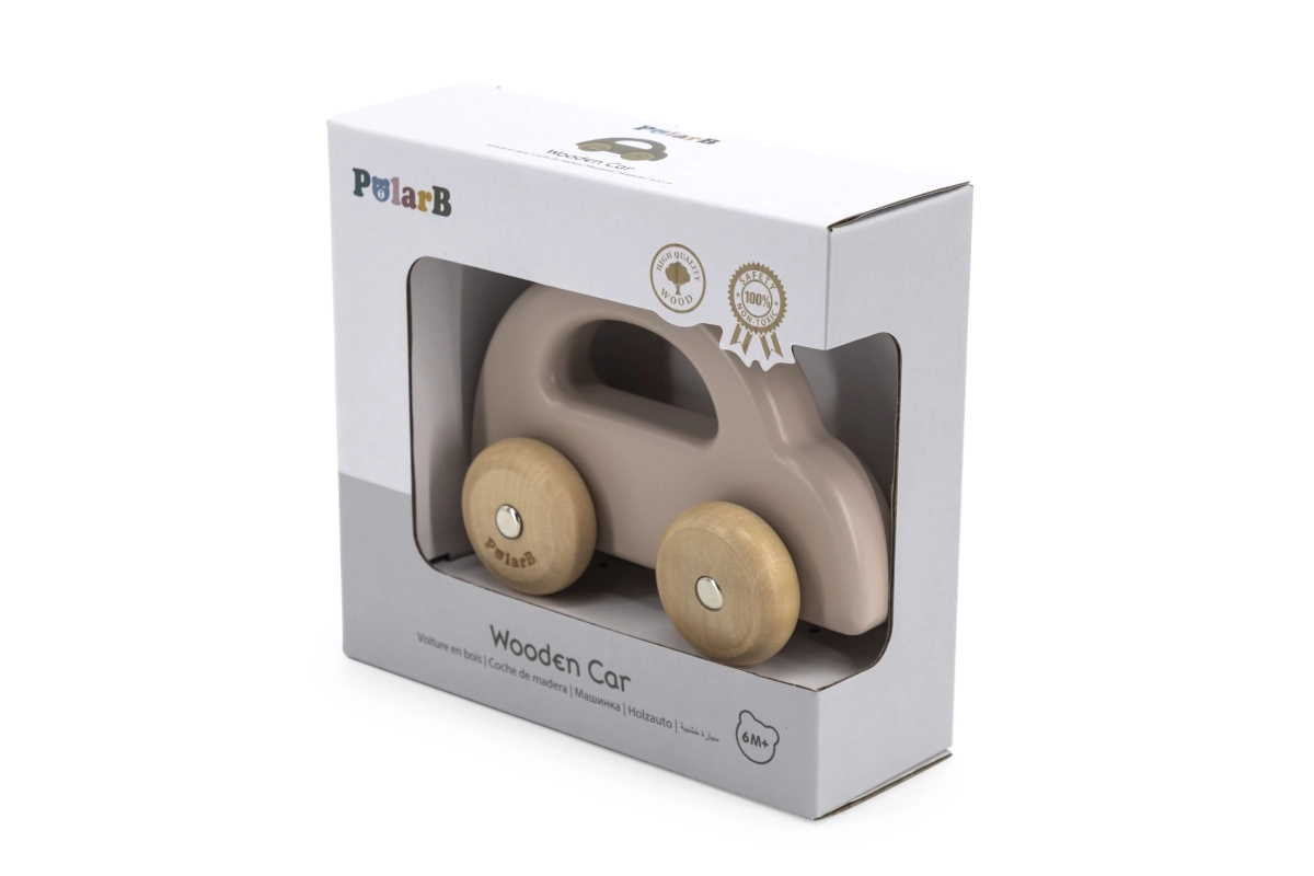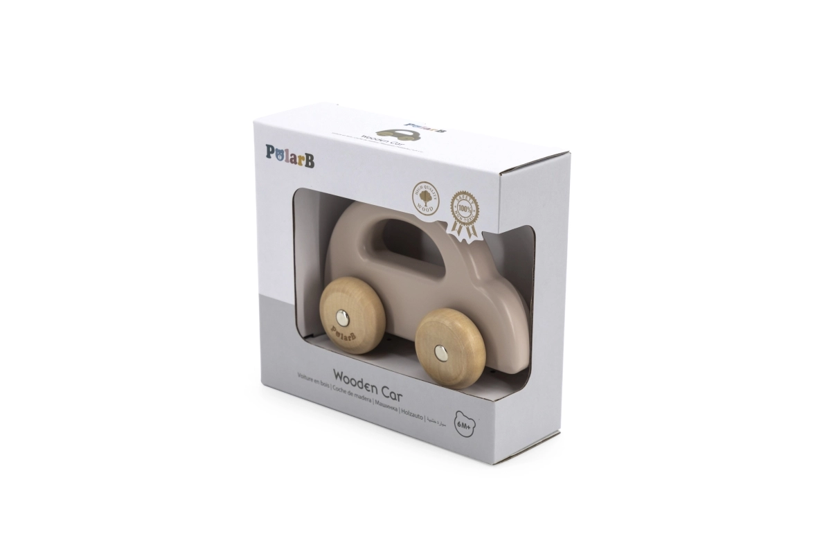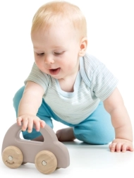 Medinis stumdomas automobilis – puikus žaislas vaikams nuo šešių mėnesių. Dėl paprasto dizaino ir malonių pastelinių spalvų jį lengva sugriebti mažomis rankytėmis. Automobilio ratai tylūs ir užtikrina sklandų judėjimą žaidžiant. Žaislas saugus dėl suapvalintų kampų ir nudažytas netoksiškais dažais.