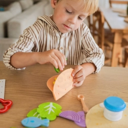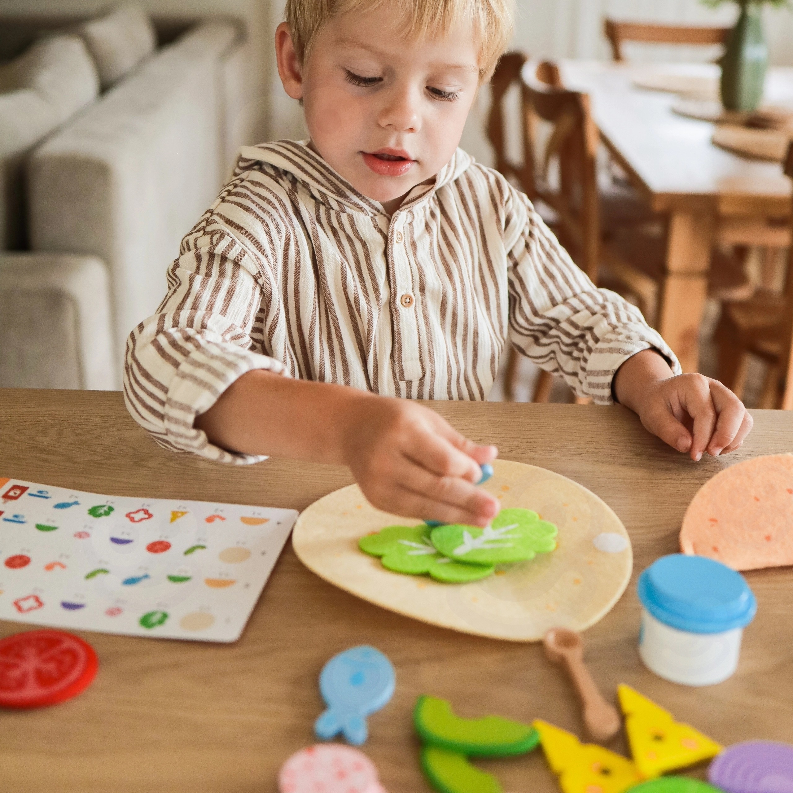 Tvirtų medinių detalių ir minkštų veltinio tortilijų derinys lavina smulkiąją motoriką, tekstūrų pažinimą ir užtikrina saugų žaidimą net patiems mažiausiems.