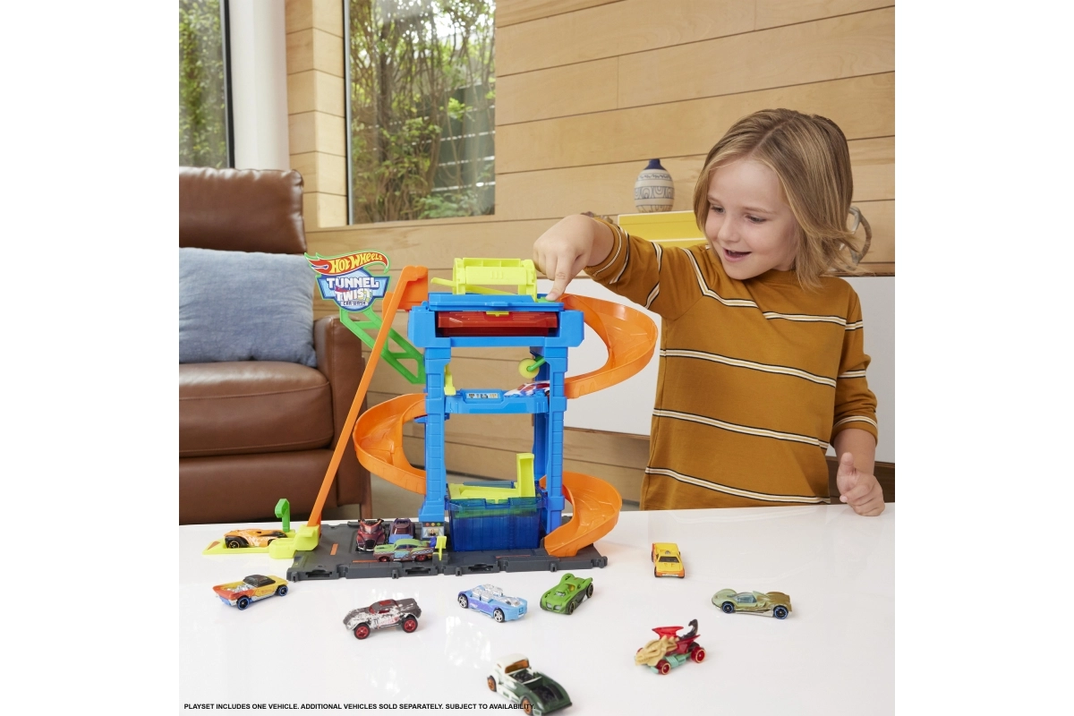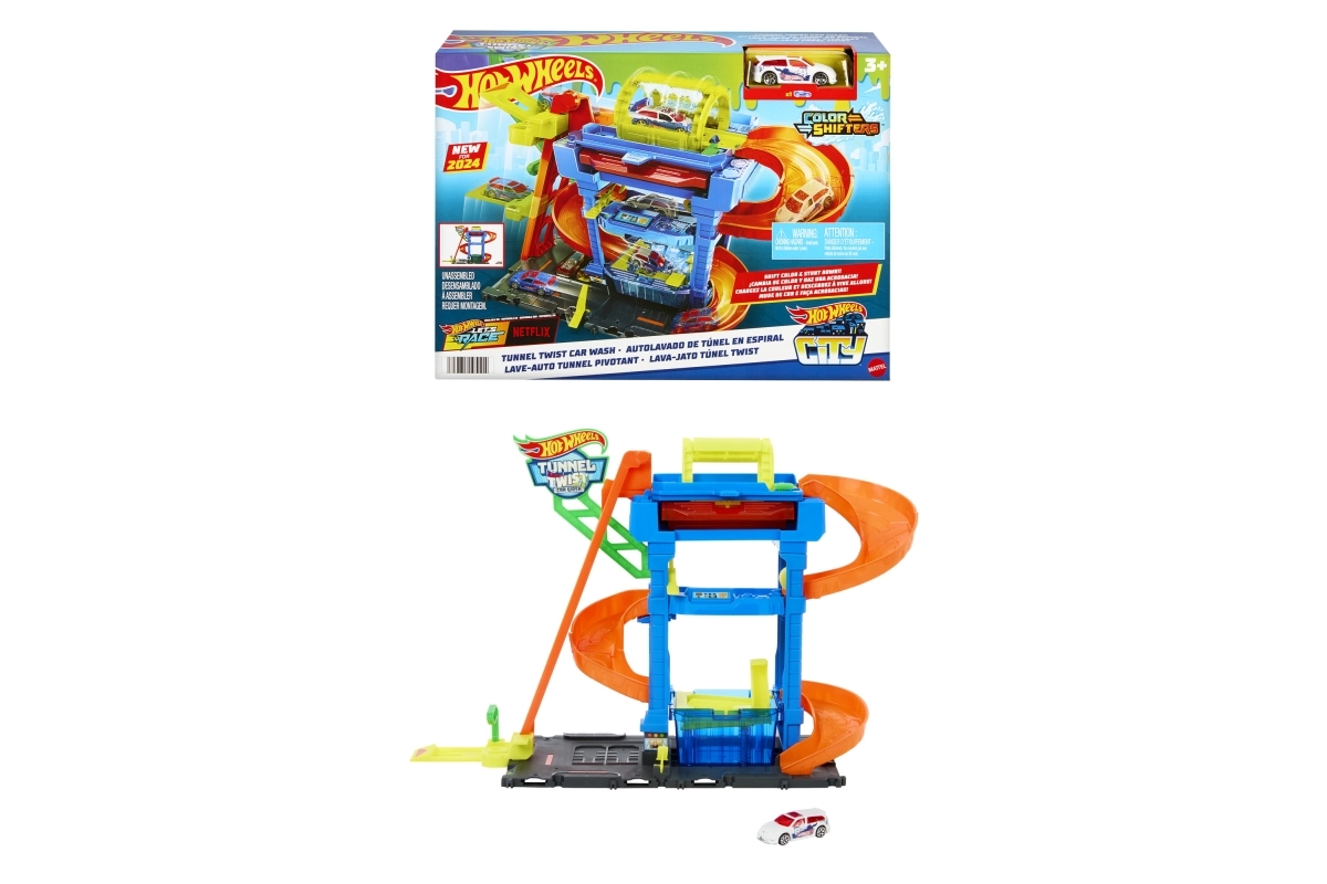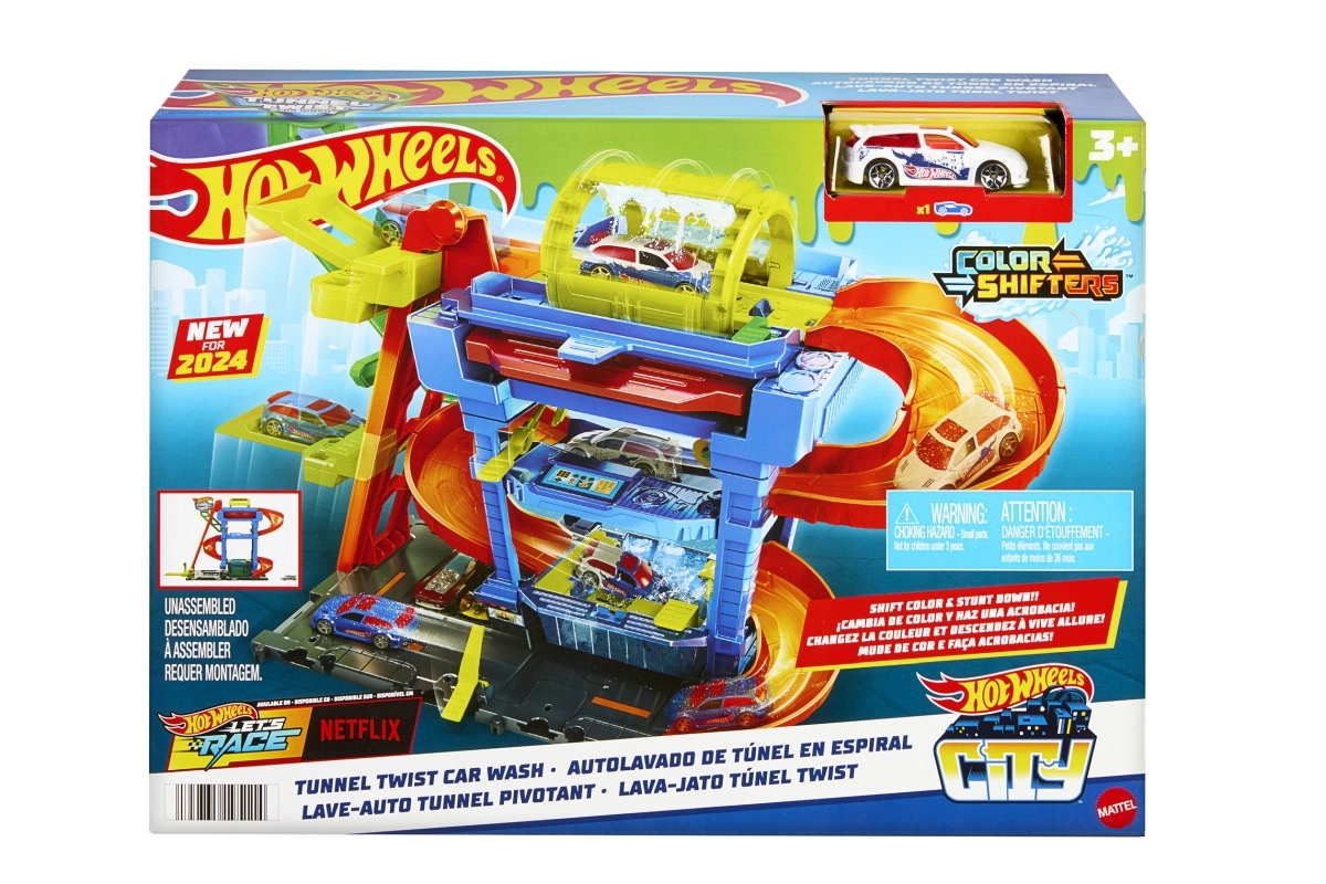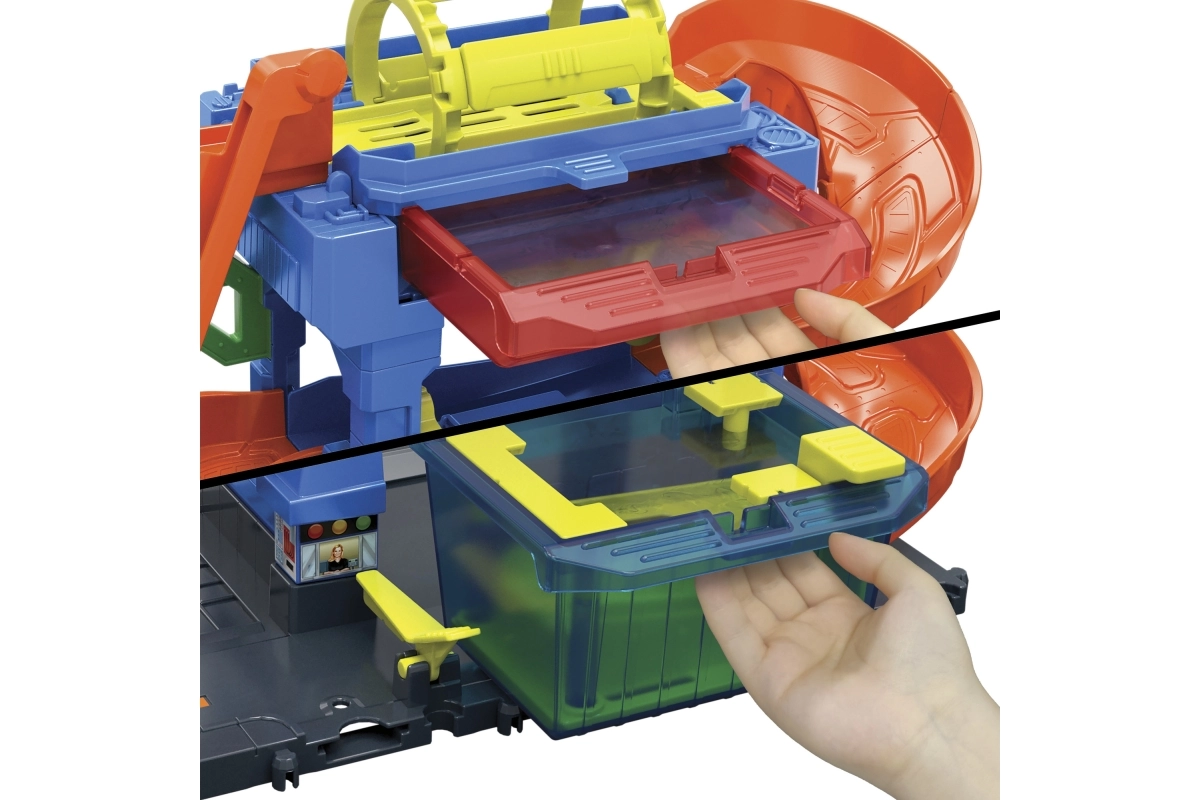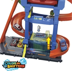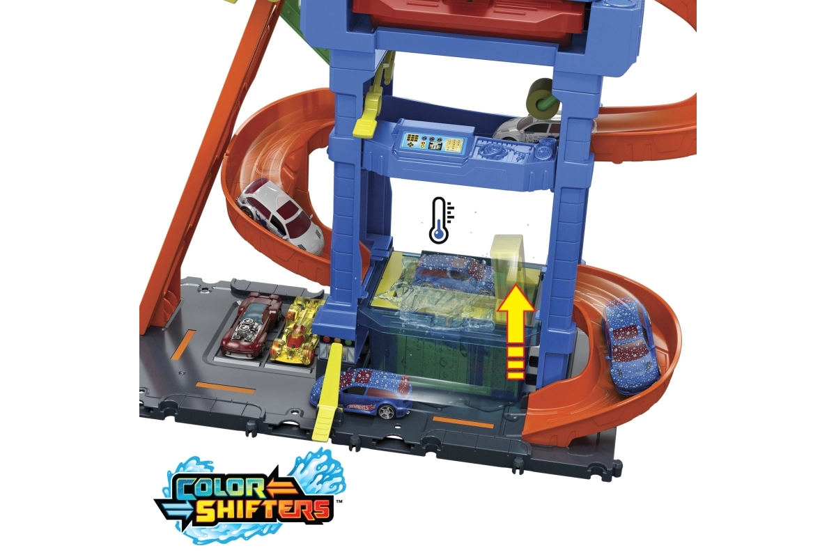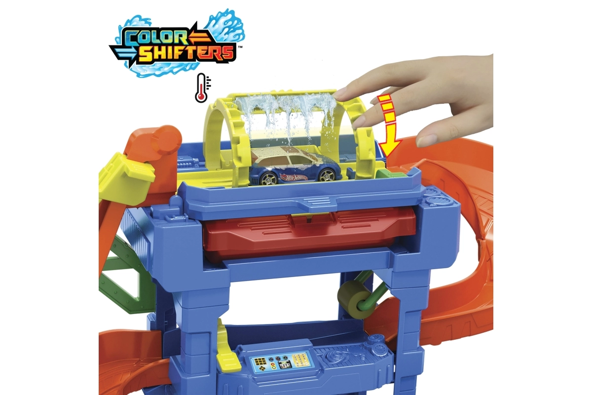 Hot Wheels City Color Shifters plovykla su besisukančiu tuneliu suteikia veiksmo, pilno spalvų pokyčių ir interaktyvių elementų. Vaikai gali rankiniu liftu pakelti mašinėlę į viršutinį aukštą ir stebėti, kaip jos išvaizda akimirksniu pasikeičia šiltame vandenyje. Tuomet ji leidžiasi rampa per putų volelį, o „detalizavimo“ zonoje viskas užbaigiama iki paskutinio smagaus žingsnio.