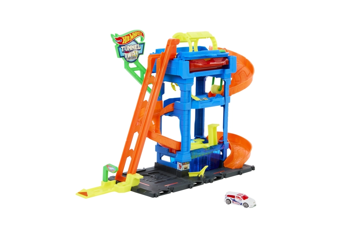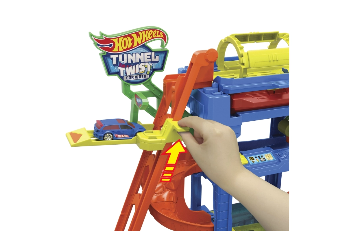 Patirkite begalinį smagumą su Hot Wheels City Color Shifters automobilių plovykla ir besisukančiu tuneliu, kur mažyliai stebi, kaip mašinėlės keičia spalvas tarsi burtų keliu! Vaikai liftu pakelia automobilį, pravažiuoja pro besisukantį plovimo tunelį su šiltu vandeniu akimirksniu pakeisti dekorui, nusileidžia nuo rampos per putų volelį, užbaigia priežiūrą „siurblyje“ ir galiausiai grąžina pradinės spalvos atspalvius ledo vandens stotyje. Idealu kūrybiškam žaidimui ir smulkiajai motorikai lavinti vaikams nuo 3 metų.