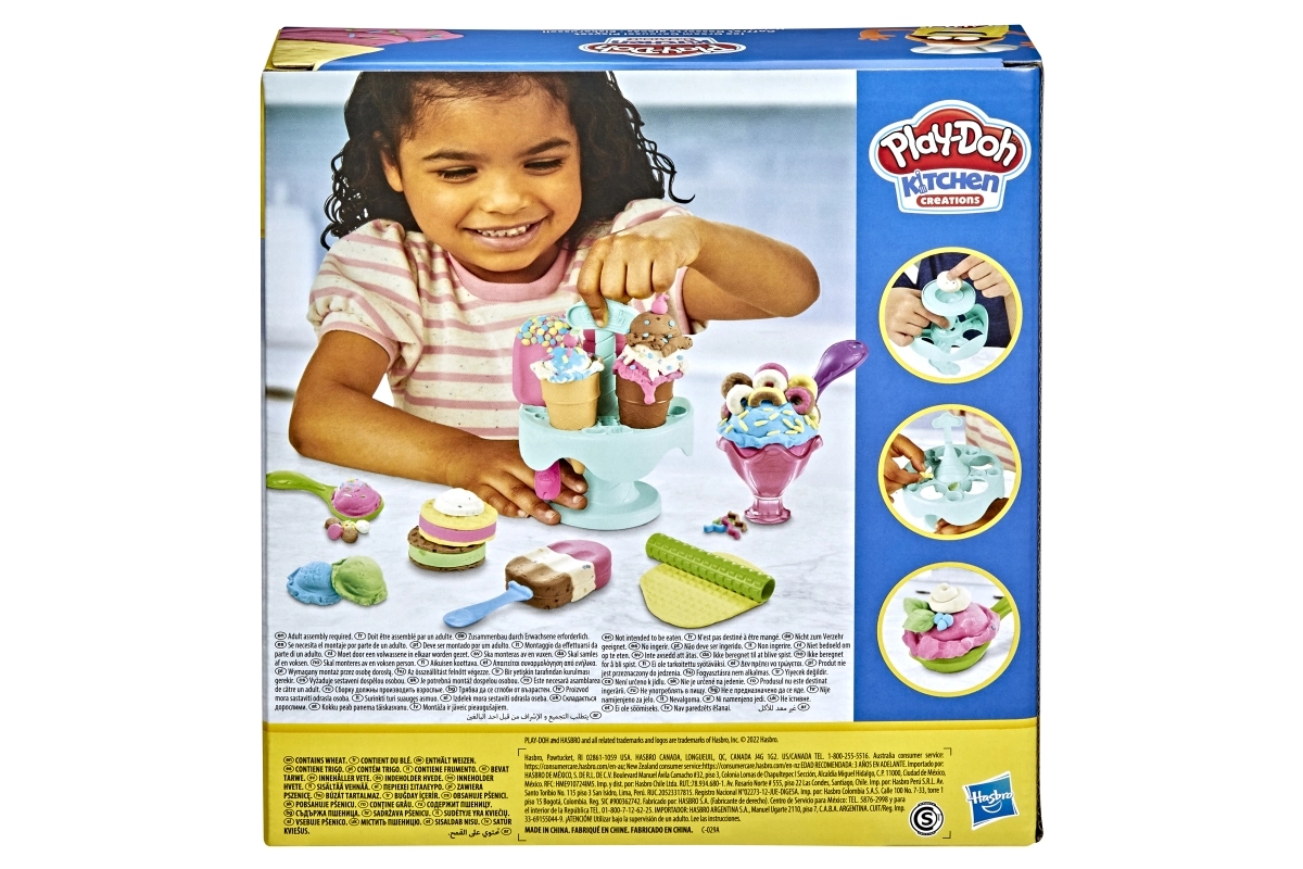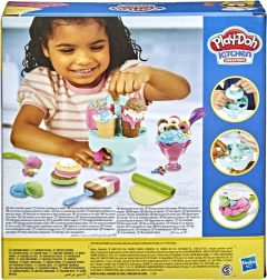 Su šiuo Play-Doh ledų rinkiniu vaikai gali „paruošti“ ledus kornete arba taurelėje, juos dekoruoti ir patiekti stovelije. Lengva naudoti, nelimpa ir suteikia valandų kūrybiško žaidimo.