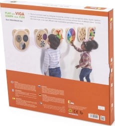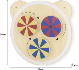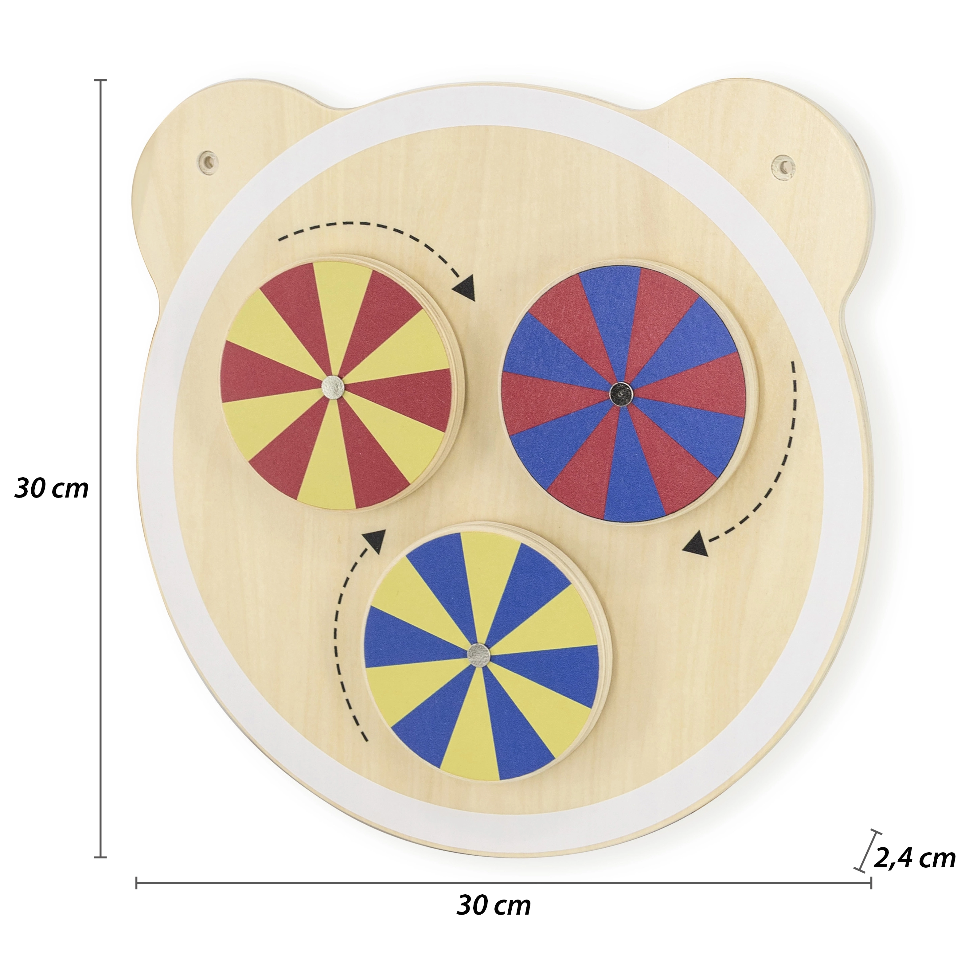 Medinė lenta su žavinga meškiuko galvute pavers bet kurį vaikų kampelį kūrybiška žaidimų erdve. Tris spalvotus ratukus lengva sukti ir stebėti įspūdingus optinius efektus, kurie sudomina vaikus ir skatina toliau tyrinėti. Lenta idealiai tinka vaikų kambariui, taip pat darželiams ir žaidimų zonoms.