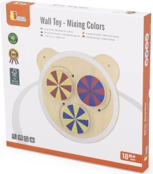 Trys lengvai besisukantys ratukai pagrindinėmis spalvomis sukantis kuria įtraukiančius raštus. Vaikai žaismingai mokosi atpažinti spalvas, suvokti judesį ir ritmą.