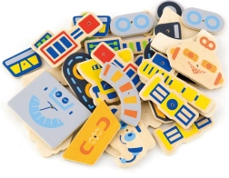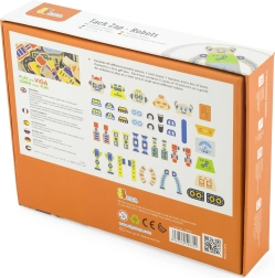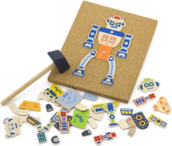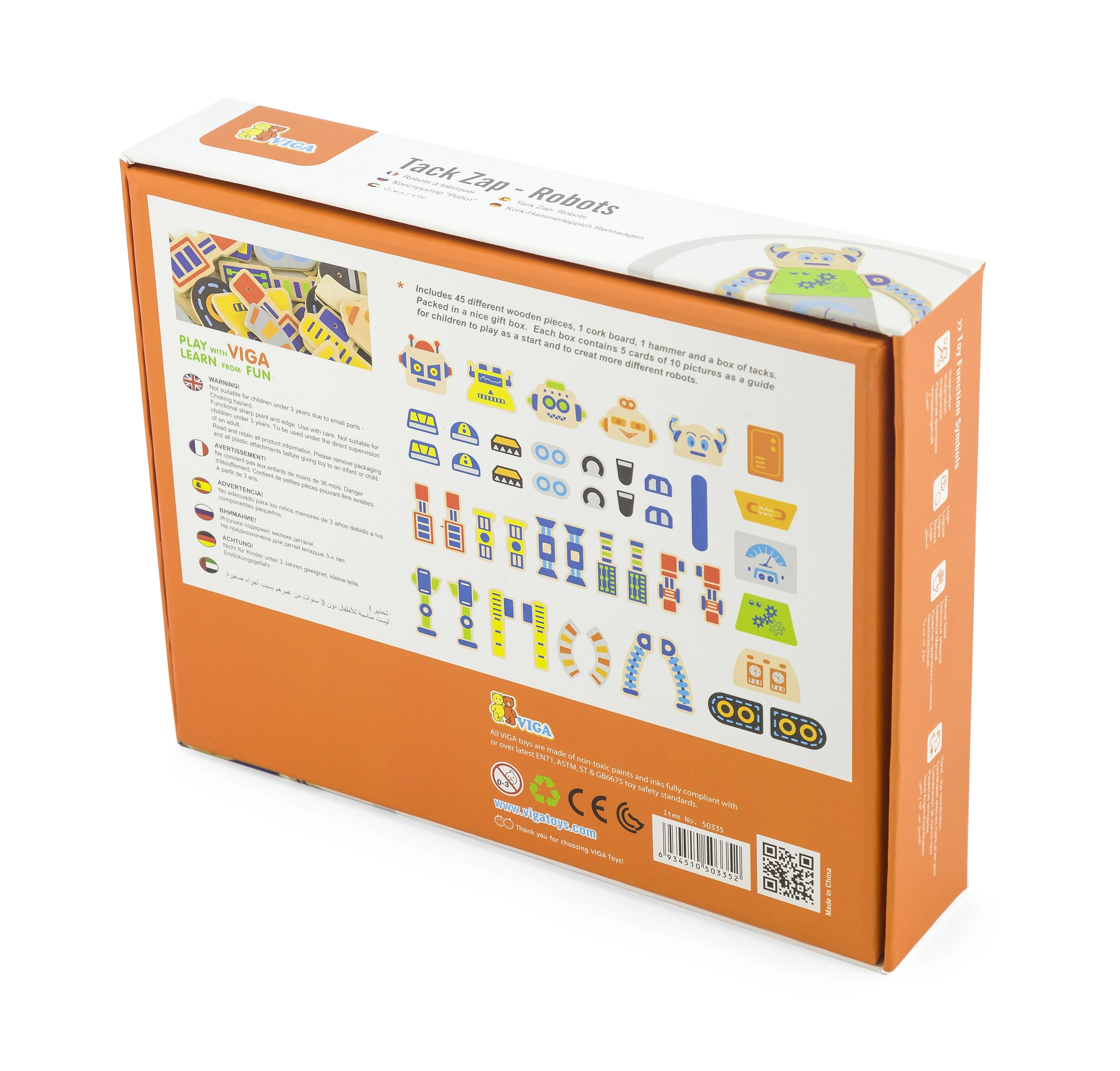 Atraskite linksmą ir edukacinį žaidimą mažiesiems konstruktoriams – medinę VIGA vinių kalimo dėlionę robotų tema. Rinkinyje yra 45 spalvotos medinės detalės, kamštinė lenta, medinis plaktukas, vinukai ir kortelės su pavyzdžiais. Vaikai lavina smulkiąją motoriką, loginį mąstymą, koncentraciją ir kūrybiškumą, kai tvirtina formas prie lentos pagal savo fantaziją arba pagal šablonus.