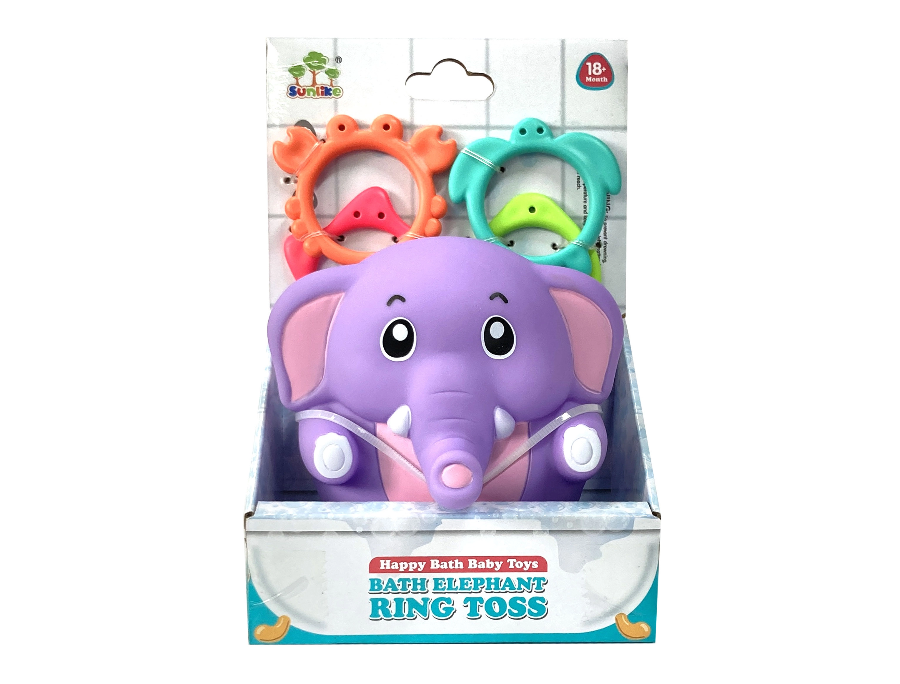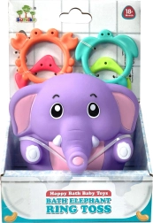 Vonios žaislas drambliuko formos su metimui skirtais žiedais yra puikus pramogų šaltinis jūsų vaikams maudynių metu.