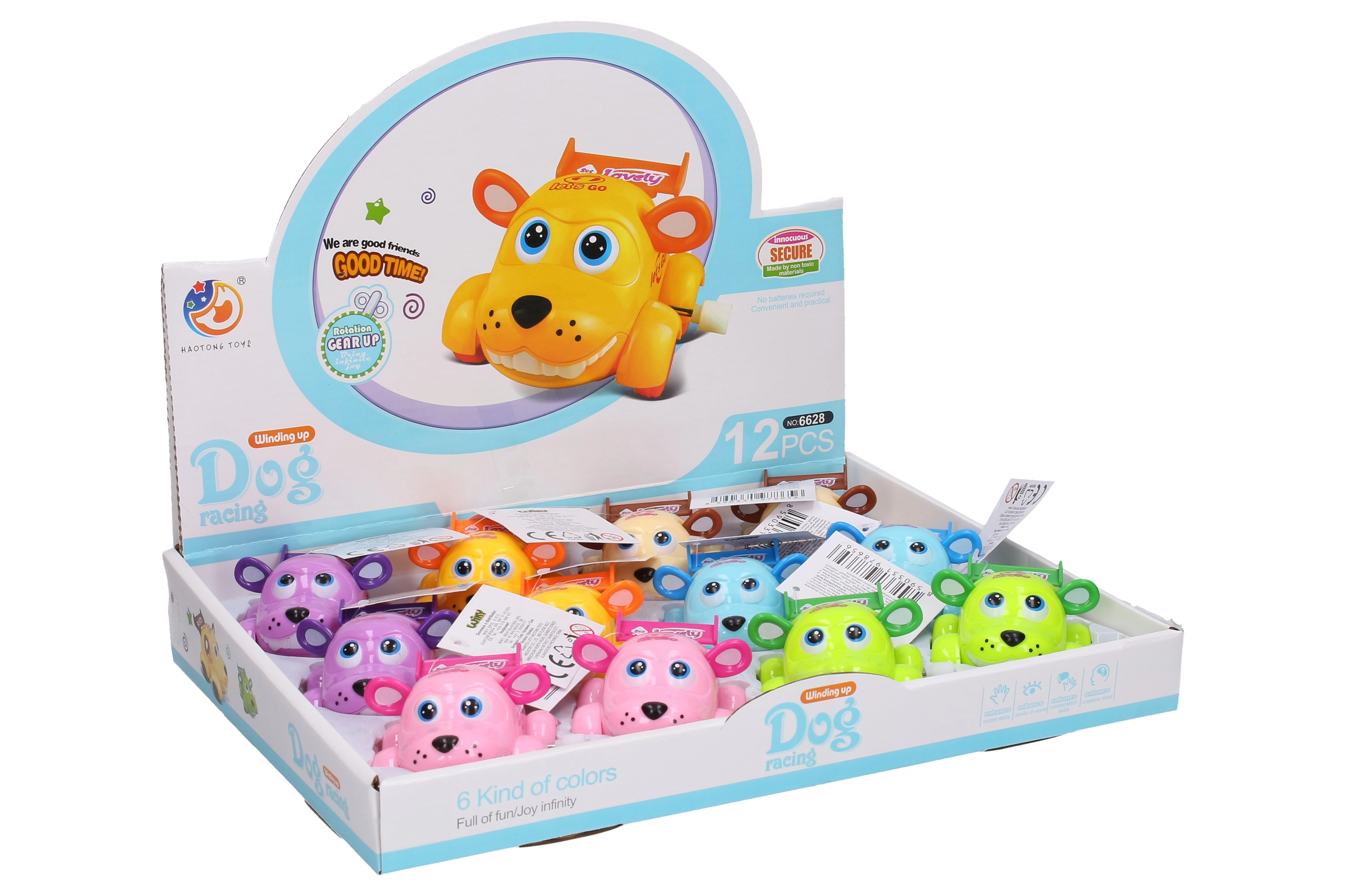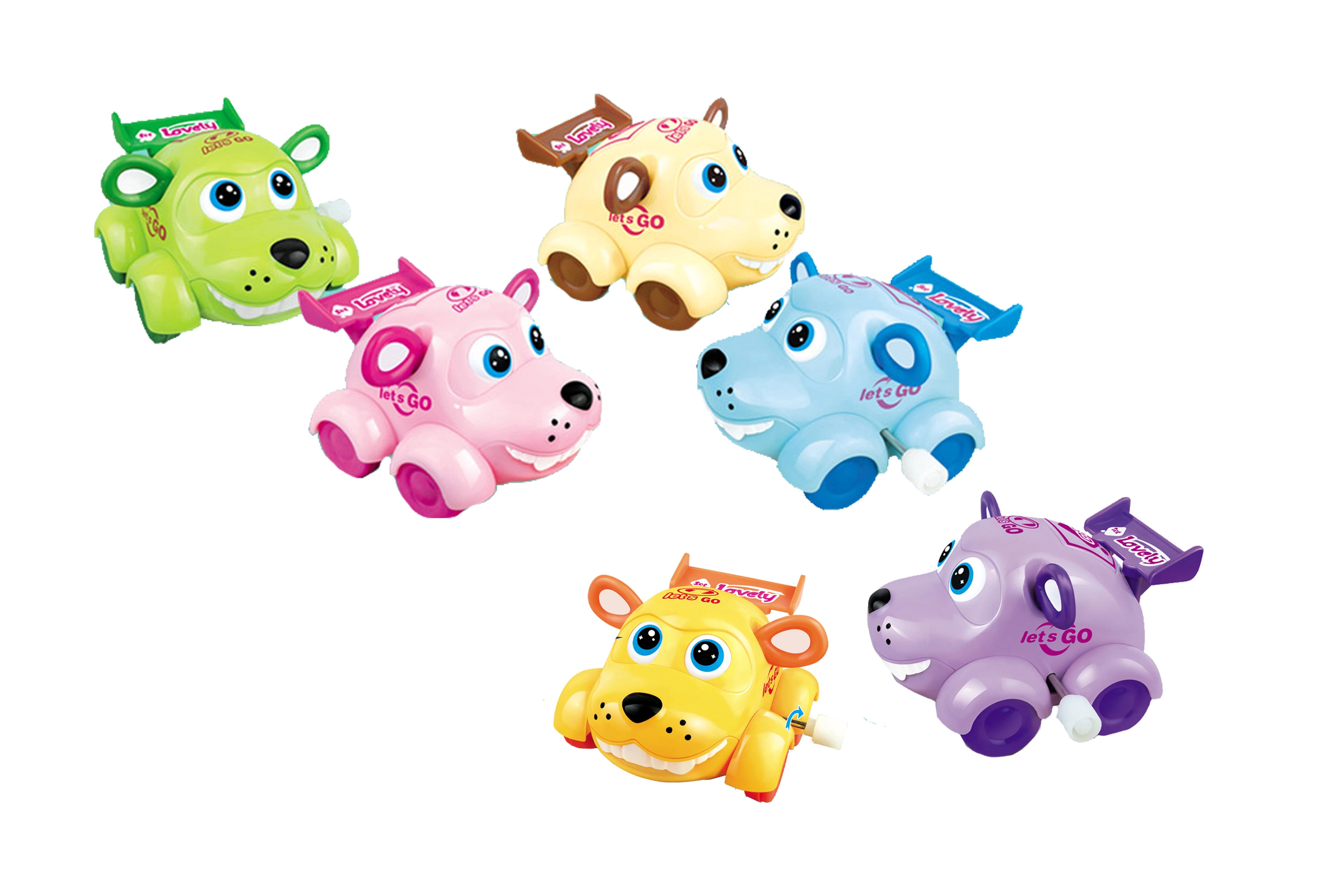 Žavus prisukamas šuniukas iš plastiko, 8 cm dydžio, ideali žaislas mažiems vaikams. Tiesiog prisukite ir stebėkite, kaip jis juda.