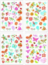 - 4 lapai motyvų: ryškūs pavasariniai drugelių ir gėlių dizainai vaikams ir suaugusiems.