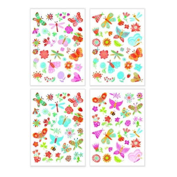Papuoškite odą švelniais gamtos motyvais. Šis laikinų tatuiruočių rinkinys siūlo spalvingus drugelius ir gėles, paprastą uždėjimą per 30 sekundžių ir saugų pašalinimą su muilu arba aliejuku. Pakuotėje yra 4 lapai pavasarinių tatuiruočių, tinka vaikams nuo 3 metų.