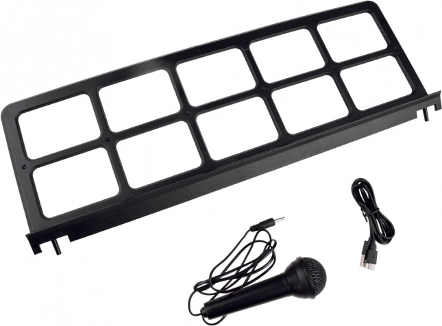 - Klavišinis, mikrofonas, maitinimo laidas, noto laikiklis, instrukcija