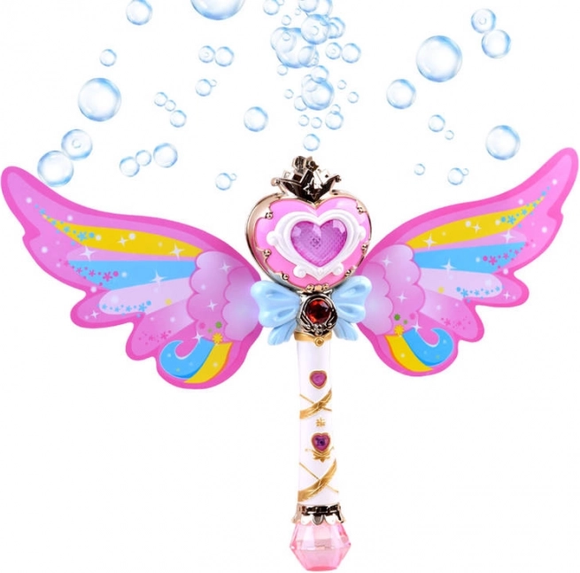 Ši žavinga lazdelė su vaivorykštiniais sparnais leidžia leisti spalvotus muilo burbulus, kurie pradžiugins kiekvieną vaiką. Paspaudus mygtuką, suskamba linksma muzika, o lazdelė nušvinta ryškiomis šviesomis.